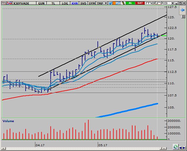Aşağıdaki grafikte yukarı yönlü bir eğim içerisindeki kanalın alt bandına yakın bir görünüm sergileyen Haziran vadeli BİST30 sözleşmesi için 120.000 desteğinin teknik gücü de sanırım görülüyor.