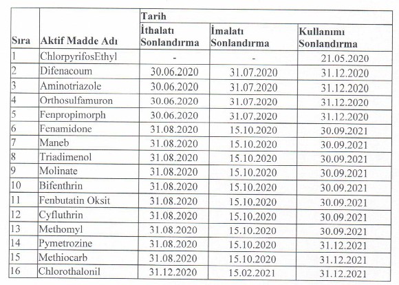 Tarım ve Orman Bakanlığı 16 pestisit (tarım zehiri) etken maddesinin yasaklanmasına karar verdi.