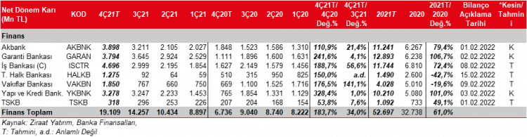 Tüm bu gelişmelere bağlı olarak, 2021 yılının son çeyreğinde takibimizdeki bankaların toplam karlarının bir önceki çeyreğe göre %34, bir önceki yılın aynı dönemine göre ise %183,7 oranında artacağını tahmin ediyoruz. Bu tahminlerle birlikte 2021 yılını takibimizdeki bankaların bir önceki yıla göre %61 oranında kar artışıyla kapaması beklenmektedir.