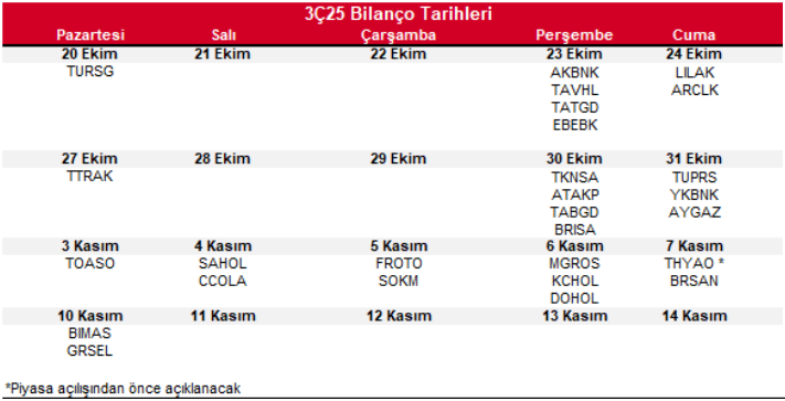 3Ç25 Bilanço Tarihleri