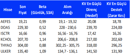 Teknik takibimizde olan hisseler için uygun alım aralıkları, hedef fiyat ve zarar kes seviyeleri tamamen teknik analiz dinamikleri göz önünde bulundurularak belirlenmektedir. Piyasa koşullarındaki genel değişimlerin bu hisseleri de BETA’ları oranınca etkilemesi beklenebilir.