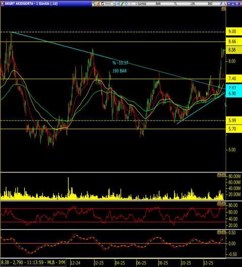 7.40 seviyesi dikkate alınması halinde yukarı yönlü hareket devamı ile 8.66 seviyesi ilk direnç olmak üzere sırasıyla; 8.80 ve 9 dirençleri hedeflenebilir.