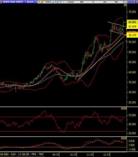 Tepki alımlarının satışları karşılaması halinde ilk olarak 65.20 seviyesinin üzerinde kapanışlar görmeliyiz. Bu seviyenin üzerinde bollinger üst banda doğru yükselişler ivmelenebilir.