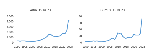 Altın ve gümüş gibi değerli metallerde özellikle Trump’ın göreve gelmesiyle birlikte hızla yükselen belirsizlik ve risk artışının etkisiyle olağan dışı artışlar ortaya çıkmış görünüyor. Bunun temel nedeni Trump’ın göreve gelişini izleyerek yaptığı açıklamalar ve uygulamaların dünyada büyük bir belirsizlik yaratmış olmasıdır.