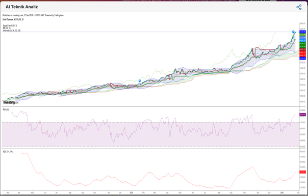 Her iki metal de tarihi zirvelerine yakın ve teknik olarak hâlâ al sinyali veriyor. Ancak, özellikle gümüşte son dönemdeki sert yükselişler sonrası kısa vadeli düzeltmeler şaşırtıcı olmaz. Altın ise güvenli liman algısıyla orta-uzun vadede güçlü kalmaya devam edebilir.