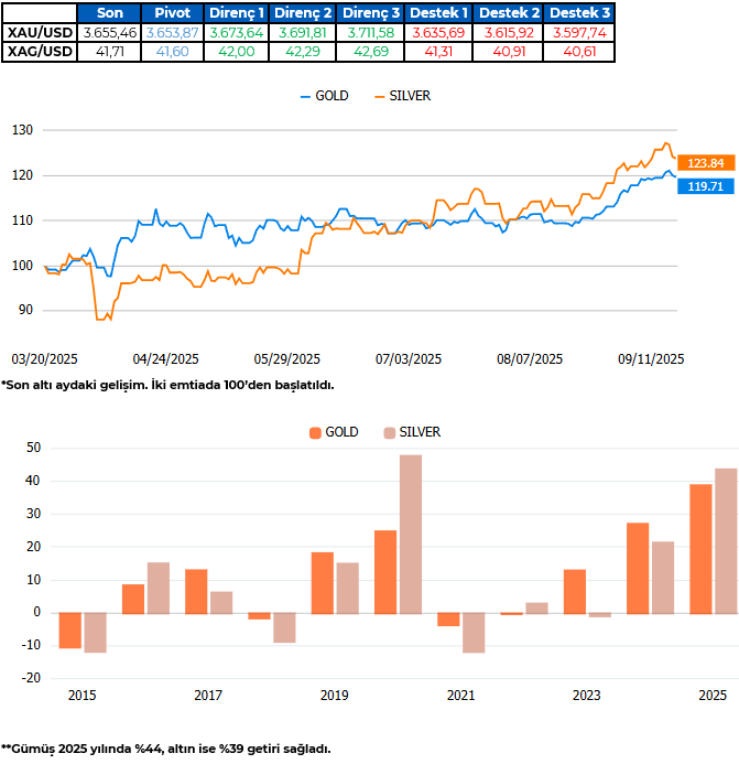 Faiz indiriminden ziyade karar metni, emtialardaki fiyatlama açısından daha önemli oldu. Çünkü, faizler yüksekken yatırımcılar tahvil, mevduat gibi faizli ürünleri tercih ediyor, altına talep görece azalıyor. Faiz düştüğünde bu alternatiflerin cazibesi azalırken, altına yönelim artıyor. Faiz indirimi genellikle doların değer kaybetmesine yol açarken ve güvenli limanlara geçişler hızlanıyor. Bu kapsamda faiz indirimi olması ardından ons altın 3.700’lü seviyelere kadar yükselerek yeni rekorunu da kırdı.