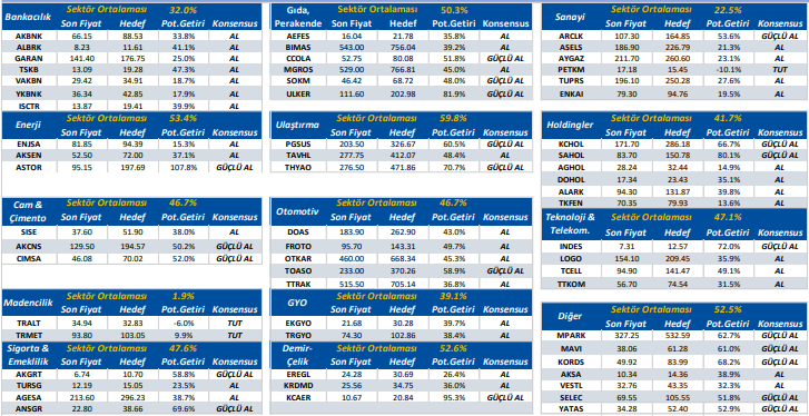 Not: Yukarıda yer alan hedef fiyatlar, potansiyel getiriler ve konsensus önerileri, Halk Yatırım öneri ve beklentileri değildir. Bu veriler, Reuters, Matriks, Bloomberg vb. güvenilir olduğuna inanılan ve en az 3 analist tarafından paylaşılan hedef fiyat ve tavsiyeler olup bilgi paylaşımı amacıyla listelenmiştir.