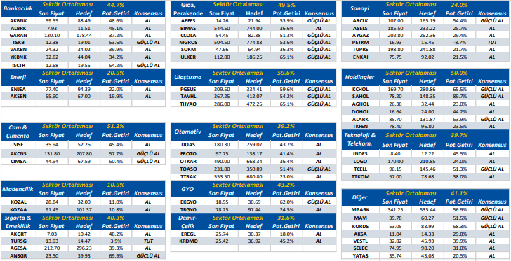 Not: Yukarıda yer alan hedef fiyatlar, potansiyel getiriler ve konsensus önerileri, Halk Yatırım öneri ve beklentileri değildir. Bu veriler, Reuters, Matriks, Bloomberg vb. güvenilir olduğuna inanılan ve en az 3 analist tarafından paylaşılan hedef fiyat ve tavsiyeler olup bilgi paylaşımı amacıyla listelenmiştir.