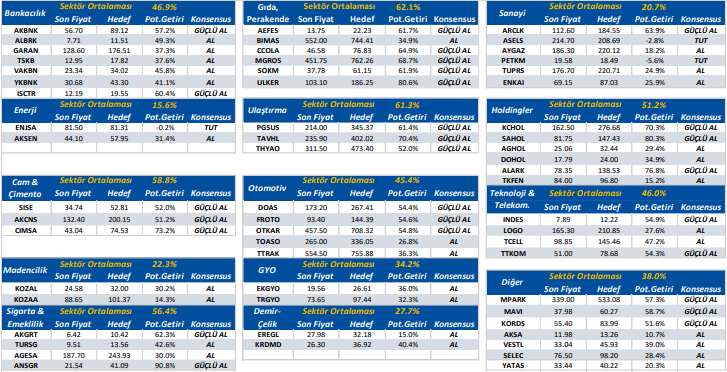 Not: Yukarıda yer alan hedef fiyatlar, potansiyel getiriler ve konsensus önerileri, Halk Yatırım öneri ve beklentileri değildir. Bu veriler, Reuters, Matriks, Bloomberg vb. güvenilir olduğuna inanılan ve en az 3 analist tarafından paylaşılan hedef fiyat ve tavsiyeler olup bilgi paylaşımı amacıyla listelenmiştir.
