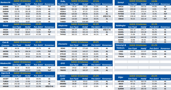 Not: Yukarıda yer alan hedef fiyatlar, potansiyel getiriler ve konsensus önerileri, Halk Yatırım öneri ve beklentileri değildir. Bu veriler, Reuters, Matriks, Bloomberg vb. güvenilir olduğuna inanılan ve en az 3 analist tarafından paylaşılan hedef fiyat ve tavsiyeler olup bilgi paylaşımı amacıyla listelenmiştir.