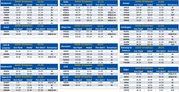 Not: Yukarıda yer alan hedef fiyatlar, potansiyel getiriler ve konsensus önerileri, Halk Yatırım öneri ve beklentileri değildir. Bu veriler, Reuters, Matriks, Bloomberg vb. güvenilir olduğuna inanılan ve en az 3 analist tarafından paylaşılan hedef fiyat ve tavsiyeler olup bilgi paylaşımı amacıyla listelenmiştir.