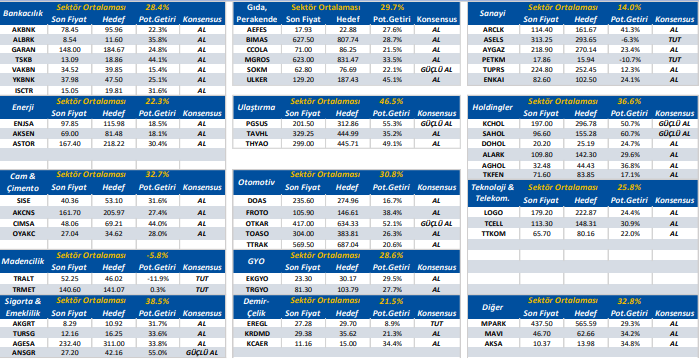 Not: Yukarıda yer alan hedef fiyatlar, potansiyel getiriler ve konsensus önerileri, Halk Yatırım öneri ve beklentileri değildir. Bu veriler, Reuters, Matriks, Bloomberg vb. güvenilir olduğuna inanılan ve en az 3 analist tarafından paylaşılan hedef fiyat ve tavsiyeler olup bilgi paylaşımı amacıyla listelenmiştir.