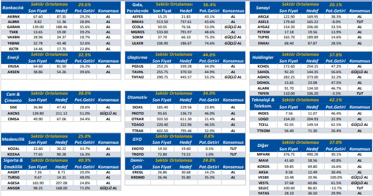 Not: Yukarıda yer alan hedef fiyatlar, potansiyel getiriler ve konsensus önerileri, Halk Yatırım öneri ve beklentileri değildir. Bu veriler, Reuters, Matriks, Bloomberg vb. güvenilir olduğuna inanılan ve en az 3 analist tarafından paylaşılan hedef fiyat ve tavsiyeler olup bilgi paylaşımı amacıyla listelenmiştir.