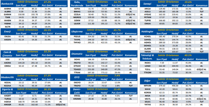 Not: Yukarıda yer alan hedef fiyatlar, potansiyel getiriler ve konsensus önerileri, Halk Yatırım öneri ve beklentileri değildir. Bu veriler, Reuters, Matriks, Bloomberg vb. güvenilir olduğuna inanılan ve en az 3 analist tarafından paylaşılan hedef fiyat ve tavsiyeler olup bilgi paylaşımı amacıyla listelenmiştir.
