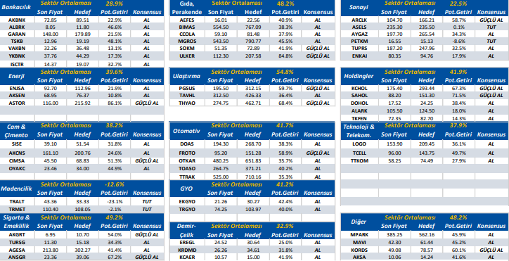 Not: Yukarıda yer alan hedef fiyatlar, potansiyel getiriler ve konsensus önerileri, Halk Yatırım öneri ve beklentileri değildir. Bu veriler, Reuters, Matriks, Bloomberg vb. güvenilir olduğuna inanılan ve en az 3 analist tarafından paylaşılan hedef fiyat ve tavsiyeler olup bilgi paylaşımı amacıyla listelenmiştir.