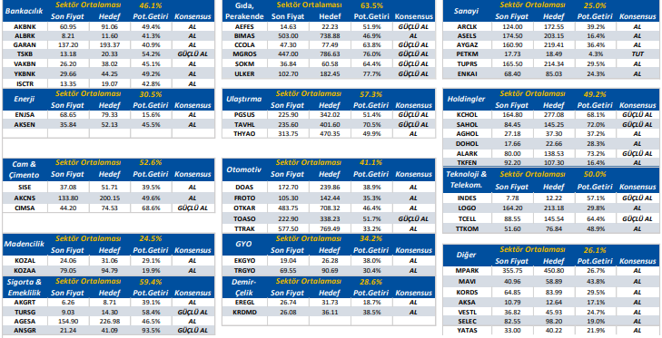 Not: Yukarıda yer alan hedef fiyatlar, potansiyel getiriler ve konsensus önerileri, Halk Yatırım öneri ve beklentileri değildir. Bu veriler, Reuters, Matriks, Bloomberg vb. güvenilir olduğuna inanılan ve en az 3 analist tarafından paylaşılan hedef fiyat ve tavsiyeler olup bilgi paylaşımı amacıyla listelenmiştir.