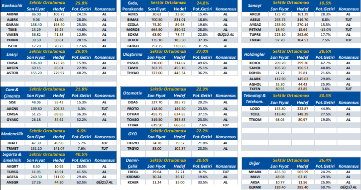 Not: Yukarıda yer alan hedef fiyatlar, potansiyel getiriler ve konsensus önerileri, Halk Yatırım öneri ve beklentileri değildir. Bu veriler, Reuters, Matriks, Bloomberg vb. güvenilir olduğuna inanılan ve en az 3 analist tarafından paylaşılan hedef fiyat ve tavsiyeler olup bilgi paylaşımı amacıyla listelenmiştir.