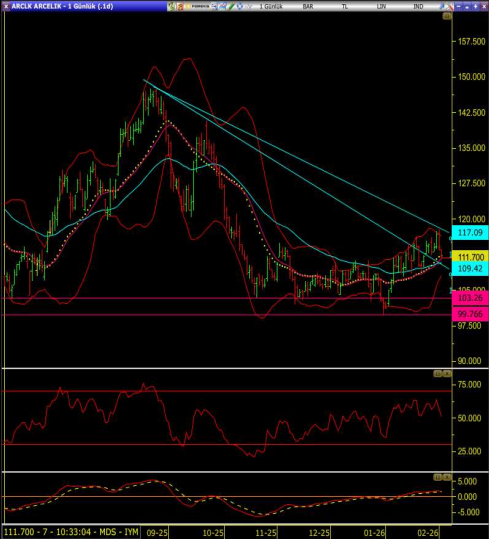 Teknik göstergeler tarafında Stokastik, RSI ve MFI göstergelerinin aşağı yönlü sinyal üretmesi kısa vadede satış baskısının sürdüğünü gösterirken, Momentum ve MACD göstergelerindeki yukarı yönlü görünüm ana trendin henüz zayıflamadığına işaret ediyor. Bu yapı, kısa vadede dalgalı ve temkinli bir seyrin öne çıkabileceğini, geri çekilmelerin ise şimdilik düzeltme niteliğinde kaldığını düşündürüyor.