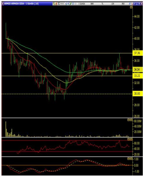 • Ancak hisse önemli ortalamaları üzerinden hacme bağlı tepki alımları ile karşılaşır ise, 35.14 seviyesi ilk direnç olmak üzere sırasıyla; 36.36 ve 37.36 seviyeleri takip edilebilir.
