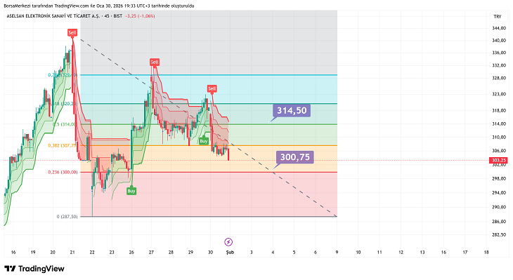 Yukarı yönlü hareketlerde ise 314,50 TL seviyesi birinci direnç noktası olarak izleniyor ve bu bölgenin aşılması halinde 320-323 TL bandındaki ikinci direnç bölgesine doğru yükseliş potansiyeli bulunuyor. Grafikteki süpertrend yeşil al sinyalleri, düşük seviyelerde alım fırsatlarının değerlendirildiğini gösterse de, trend çizgisinin kırılması için güçlü bir momentum gerekiyor. 300 TL destek ve 314,50 TL direnç aralığında pozisyon yönetimi yapılması önerilir.
