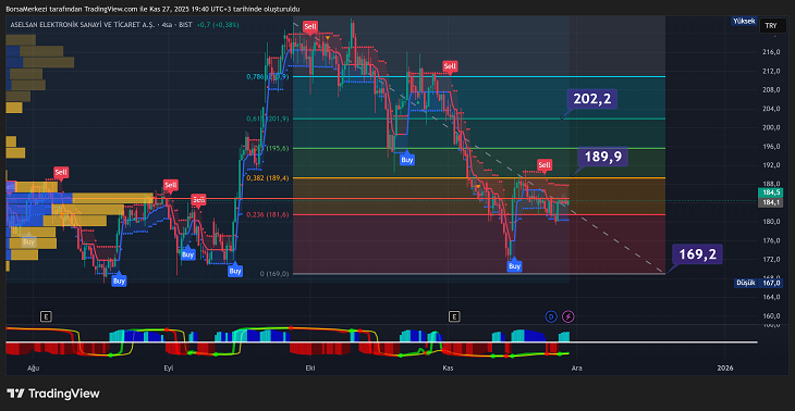 Aselsan hisse yorumları, giderek daha olumlu olurken maşAllah biraz daha yatay paralel hareket etmektedir. ASELSAN hisseleri 184.5 TL seviyesinde işlem görürken teknik görünüm nötr bir tablo sergiliyor. Hareketli ortalamalar sat sinyali verirken, osilatörler alım tarafında. Altın oran, 200 seviyelerindeki psikolojik sınırın altında güç topluyor.