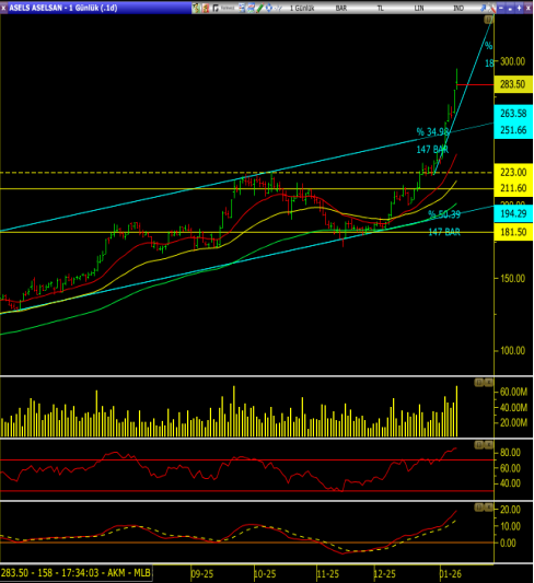 283,50 seviyesi kısa vadede önemli bir direnç alanı olup, bu bölgeye yakın fiyatlamalarda kar realizasyonları görülebilir.