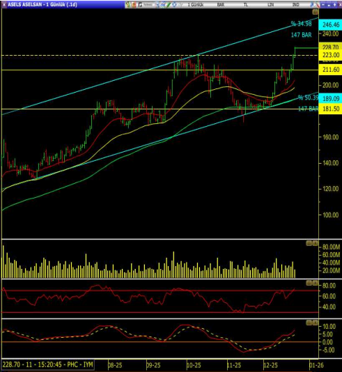 Mevcut durumda fiyat, 230 TL seviyelerine yaklaşmış durumda; 223 desteği üzerimde bir kapanış durumunda bir sonraki hedef olarak devreye girecek ve ardından 250 TL seviyeleri orta vadeli dirençler olarak izlenebilir.