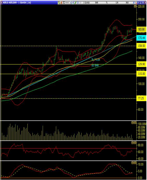 • 188.70 seviyesine kadar yükselerek zirveler oluşturan hisse tüm ortalamalarının üzerinde fiyatlanıyor.