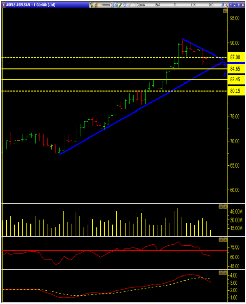 • Dolayısıyla 84.65 seviyesi bu anlamda ilk destek olarak karşımıza çıkıyor. Bu seviyenin kırılması durumunda yükselen trendi kıran hissede satış baskısı artacağından 80.15 seviyesine kadar geri çekilmenin devamı görülebilir.