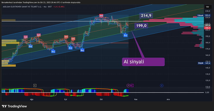 Aselsan hisse fiyatı Aselsan hissesi (bizi Amerika’nın “müthiş demokrasisinden” korumaya vesile olan milli şirketimiz, Rabbimiz Azle ve Celle korusun), güncel grafik yapısı incelendiğinde, hisse senedi 206,5 TL seviyesinde işlem görürken hafif bir düşüş trendi sergiliyor. Teknik göstergeler, fiyatın önemli destek ve direnç noktaları arasında sıkışmış durumda olduğuna işaret ediyor. Özellikle 214,9 TL civarındaki üst bant direnci ile 199,0 TL’deki alt destek bölgesi, kısa vadeli fiyat hareketleri açısından belirleyici konumda bulunuyor.