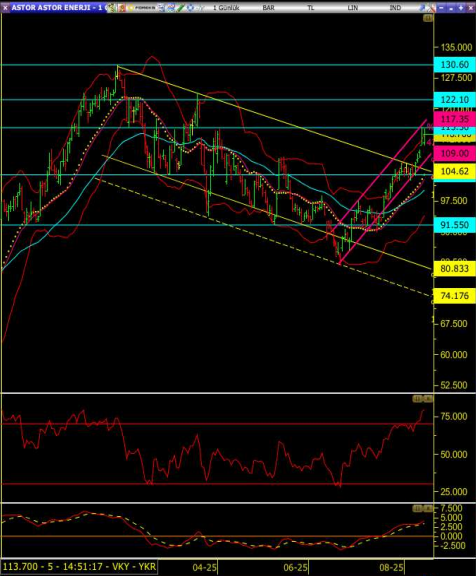 • Hisse yükselen kanalın içerisinde önceki dört işlem günündeki yükselişini sürdürüyor.