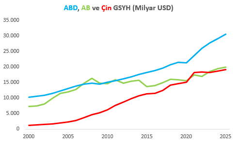 Savaşların getirdiği yıkımlara karşın Avrupa Birliği, yirmi birinci yüzyıla girerken ABD’den sonra dünyanın ikinci büyük gücü konumundaydı. Parası (euro) dolardan sonraki en güçlü rezerv para konumundaydı (bugün hala o konumdadır.) Avrupa’nın dünyanın ikinci büyük gücü konumu yüzyılın ilk çeyreğinde de devam etti. Ne var ki sahne yavaş yavaş uzak doğulularca ele geçirilmeye başlamıştı. Çin, epeyce geriden geldi ve Avrupa Birliğine yetişti. Önümüzdeki çeyrek yüzyılda Avrupa Birliğini geçecek ve ABD’yi yakalamaya gidecek.