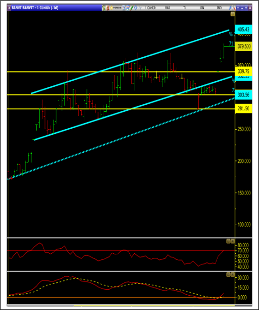 • Hisse 303.75 seviyesinde taban oluşturma çabasının ardından gelen tepki alımları ile yükselen kanal içerisindeki hareketini sürdürüyor.