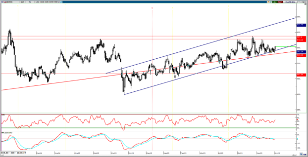 Hisse 546,00 seviyesinde hem 22 ve 50 günlük hareketli ortalamalarını geçerek yükselişini sürdürüyor. Hisse düşen kanalın destek çizgisinden destek alarak kanal içerisindeki hareketinin sürdürmektedir. Yükselişin devamı durumunda 561,0 ilk direnç noktası olarak takip edilebilir. Bu seviyenin aşılması durumunda 578,19-587,6 aralığı kısa vadeli satım bölgesi olarak izlenebilir. Satışların artması durumunda 540,00 seviyesi stop loss olarak izlenebilir.