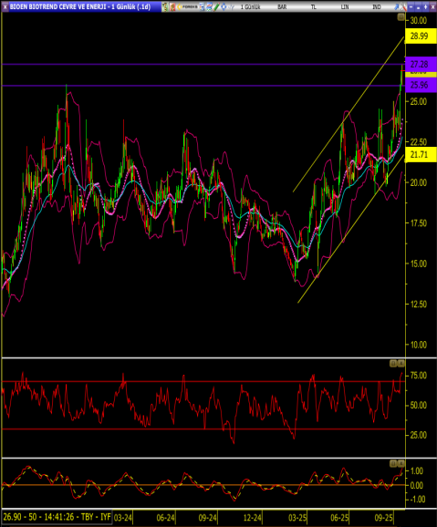 • Bu seviyenin altına yerleştiği takdirde bollinger üst bandın altına yerleşeceğinden sırasıyla 25.00 ve 24.54 alt destekler olarak takip edilebilir.