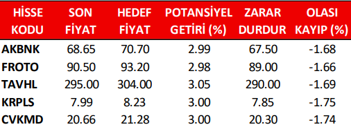 Günlük Pay (Hisse) Senedi Öneri Listesi