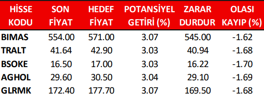 Günlük Pay (Hisse) Senedi Öneri Listesi
