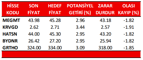Günlük Pay (Hisse) Senedi Öneri Listesi