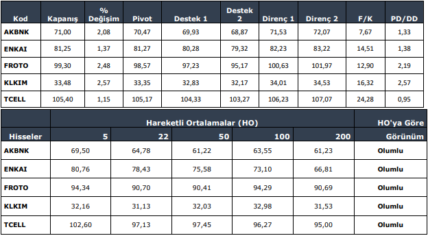 Endekste Fibonacci %38,6 düzeltme seviyesi 11600 puan hedefte bulunmaktadır. Özellikle 11300 ve 11000 üzerinde kalıcılık sağlanması halinde, 11605 direnci geçilebilir. Bu seviye üzerinde yeni zire ise orta vadeli yükselen kanal üst bandının yaklaştığı 11850-11900 aralığında olabilir. Kısa vadede yukarı yönlü momentum güçlenmesi halinde endekste son beş ayın en yüksek seviyeleri üzerine yerleşme görülebilir. Aşağı yönlü olası fiyatlamalarda ise 11300 ve 11000 seviyeleri destekler olarak izlenebilir.