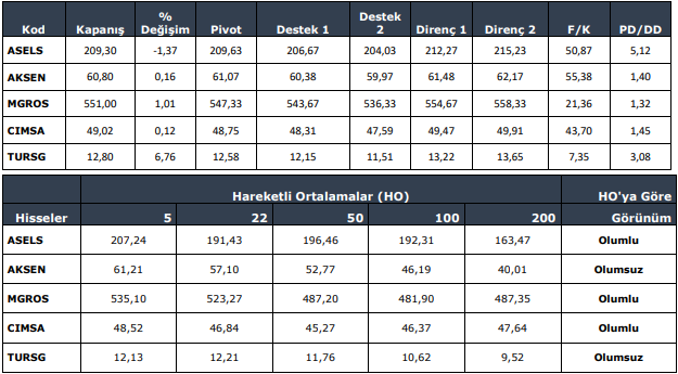 Kısa vadeli gösterge olan RSI dünkü işlemlerde ‘’62’’ seviyesine geriledi. Kısa vadeli teknik göstergelerden MACD eşik değer olan ‘’0’’ seviyesinin üzerinde hareket ederek endeksin pozitif görünümüne destek olmaya devam ediyor. Momentum ise 102 seviyesinde bulunmakta ve endeksin teknik görünümü güçlendirmektedir.