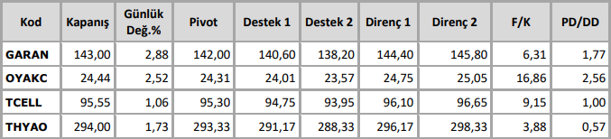 BİST100 endeksi dün 10413-10641 bandında hareket ettikten sonra günü 10616 puandan tamamladı. İşlem hacmi 114 milyar TL olarak gerçekleşti. Endekse en çok katkıyı ASELS, TUPRS, KCHOL sağlarken, TAVHL, GERIL, GSARAY baskılayan tarafta yer aldı. Sınai endeksi %2,39, bankacılık endeksi %1,93 değer kazandı. Bankacılık endeksinde geçen hafta en yüksek 16315 puanın görülmesi ile gelen kısa vadeli düzeltmenin 15500 desteği altında karşılandığını izledik. Geçtiğimiz haftayı 15888 puandan zayıf görüntü ile kapatılması ardından, XBANK’ta dünkü işlemlerde yeniden 16000 puan üzerinde harekete başlandı. Kısa vadede 15940 (5 günlük AO’sı) desteği üzerinde kalınması halinde , 16315 ve ardından son dört haftanın tepe noktası olan 16625 puan XBANK’ta hedeflenebilir. Bu seviye üzerinde ise 17000-17250 sonraki haftalık hedef direnç bölgesini oluşturmaktadır. XBANK’ta 16000 puan altında ise 15620 (22 günlük AO)ve 15400 ve 15120 destekleri bulunuyor. 50 günlük AO (14484)ve 200 günlük AO (13844)üzerine yükselerek Golden Cross oluşumunun, üçüncü haftaya taşınması orta vadeli teknik yön açısından olumlu.
