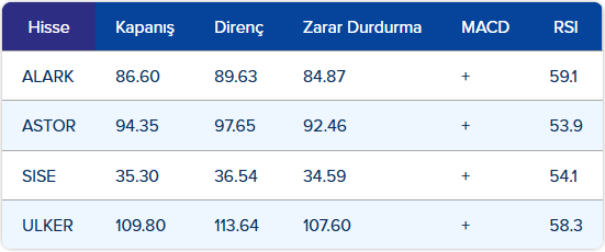 • Endeks, dün gelen alımlarla birlikte kısa vadeli olarak takip ettiğimiz ortalamaların yeniden üzerine çıktı. İşlem hacmi 104,92 milyar TL ile son günlere kıyasla yüksek bir seviyede gerçekleşti. Yukarı yönlü bu hareketin oluşmasında bankacılık endeksindeki yükselişin etkili olduğunu takip ettik.