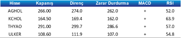 • Endekste gün içi geri çekilmelerde 10.195 – 10.086 – 9.955 puan seviyelerini takip edeceğiz. Yukarı hareketlerde ise sırasıyla 10.265 – 10.365 – 10.455 direnç seviyeleri olarak izlenebilir.