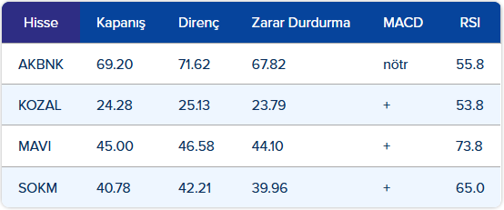 • Endekste gün içi geri çekilmelerde 11.250 – 11.190 – 11.160 puan seviyelerini takip edeceğiz. Yukarı hareketlerde ise sırasıyla 11.300 – 11.325 – 11.365 direnç seviyeleri olarak izlenebilir.