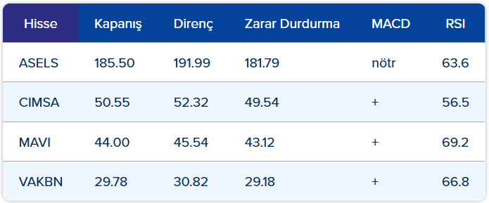• Bugün için destek noktaları olarak 3, 5 ve 8 günlük EMA’ları takibe devam ediyoruz. Buna göre 3 günlük EMA 11.452’de, 5 günlük EMA ise 11.367 seviyesinden güne başlıyor. Yukarı hareketlerde ise sırasıyla 11.605 – 11.700 – 11.800 direnç seviyeleri olarak izlenebilir.