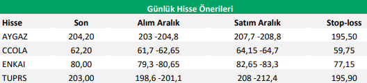 İran kaynaklı jeopolitik kaynaklı arz endişeleri nedeniyle Tüpraş’ı, Tüpraş’taki yükselişin gerisinde kalan Aygaz’ı; 2025 yılında yakalanan güçlü yurtdışı hacim büyümesinin ardından 2026’ya yönelik güçlü bir guidance açıklayan Coca-Cola’yı ve son çeyrekte artan taahhüt işleri ile finansal yatırımların katkısıyla öne çıkmasını beklediğimiz Enka İnşaat’ı günlük hisse önerilerimiz arasında değerlendiriyoruz.