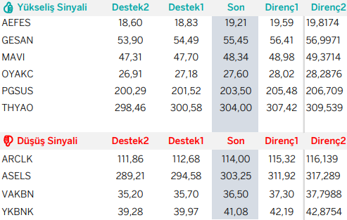 Günlük Bazda Yatırım Fikirleri’nde yer alan hisselerde günlük performans baz alındığından, yatırımcılar ilk aşamada %0.9-%2, ikinci aşamada %3.1-%4 aralıklarını pozisyon kapatma ve/veya kar alma seviyeleri olarak takip edebilirler.