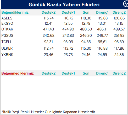 Günlük Teknik Analiz Bazlı Yatırım Fikirleri