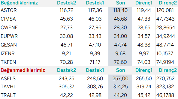Günlük Bazda Yatırım Fikirleri’nde yer alan hisselerde günlük performans baz alındığından, yatırımcılar ilk aşamada %0.9-%2, ikinci aşamada %3.1-%4 aralıklarını pozisyon kapatma ve/veya kar alma seviyeleri olarak takip edebilirler.