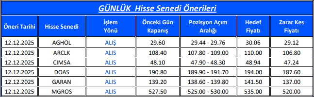 ➢ Önerilerin geçerlilik süresi raporda verilen tarihle sınırlıdır. Verilen tarih içinde hedef ve stop seviyesine ulaşmayan hisseler öneri bitiş tarihindeki kapanış fiyatından kapatılmış sayılır ve bunlar için ek bir bildirim yapılmaz.